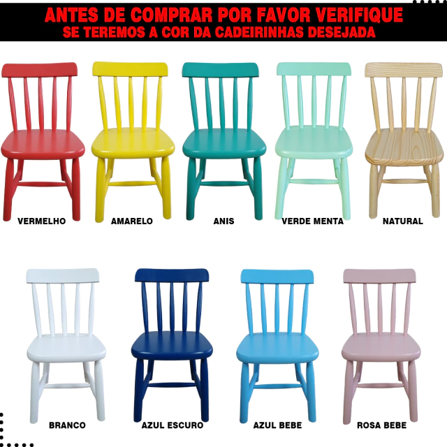 ** CASO DESEJAR OUTRA COMBINAÇÃO DE CORES DE CADEIRINHAS POR GENTILEZA REALIZAR A PERGUNTA ANTES DA COMPRA PARA VERIFICARMOS SE TEMOS DISPONIBILIDADE **