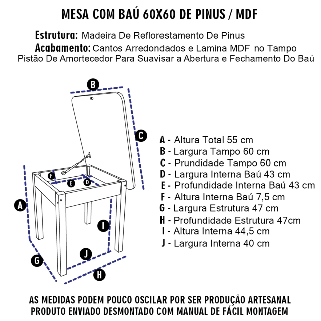 Mesa Infantil Quadrada de Madeira Com Baú Com 4 Cadeiras Sem Pintura